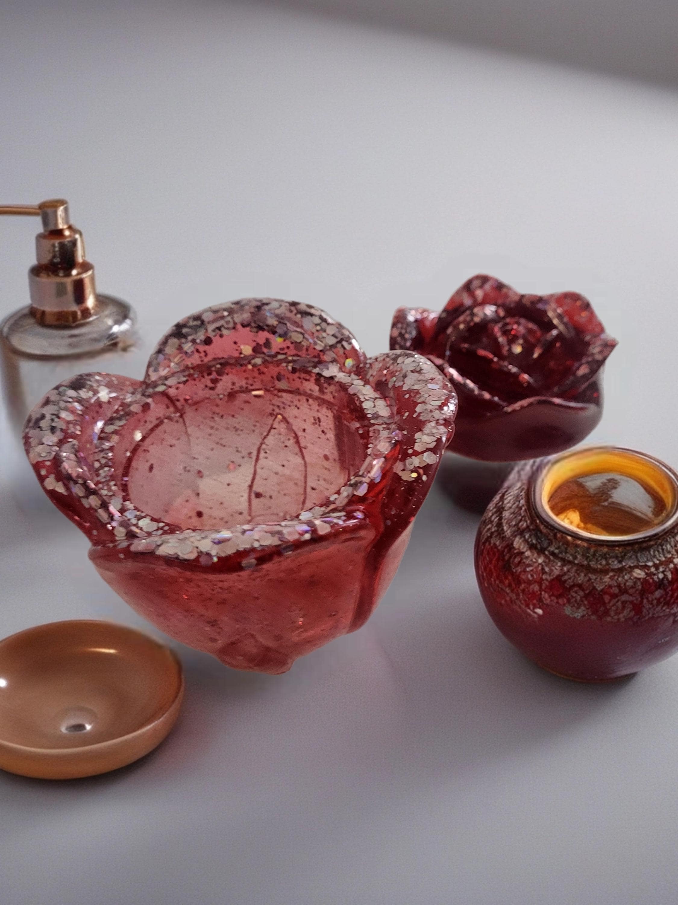 Add a touch of elegance to your space with this handcrafted Resin Rose container. Designed with intricate floral details and available in vibrant colors. This versatile piece serves as a jewelry box,Candy Dish or a charming decorative accent. Each container is handcrafted, ensuring a unique piece that adds beauty and functionality in any room.